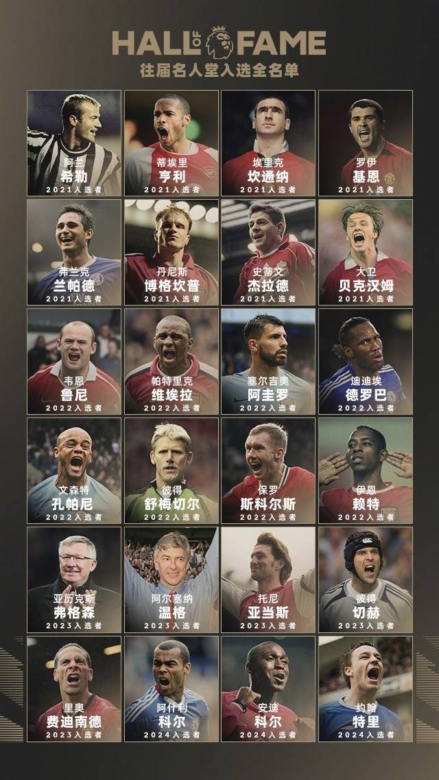 直播吧9月15日讯 英超官方回顾了历年英超名人堂入选名单,弗格森、温格、亨利、坎通纳等24人在列。2025年英超名人堂中国区投票即将开始,今年15位候选人将选出2人进入名人堂。